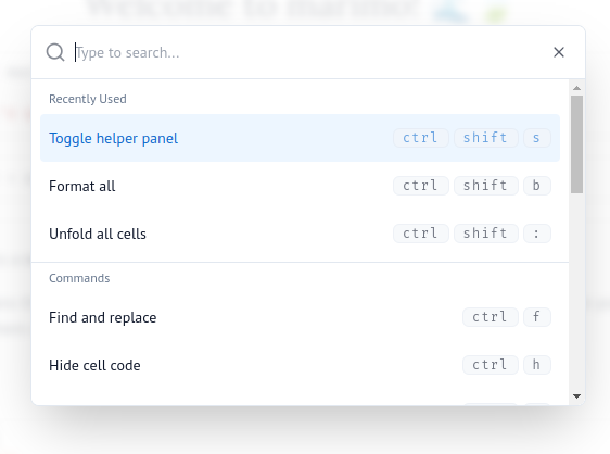 We've kept some well-known keyboard shortcuts for notebooks (Ctrl-Enter, Shift-Enter), dropped others, and added a few of our own. Hit Ctrl/Cmd-Shift-H to pull up the shortcuts.