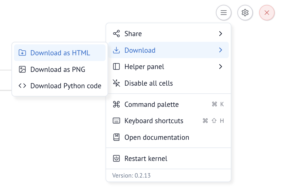 Click the three dots in the top right of a cell to pull up a context menu, letting you format code, hide code, send a cell to the top or bottom of the notebook, give the cell a name, and more.